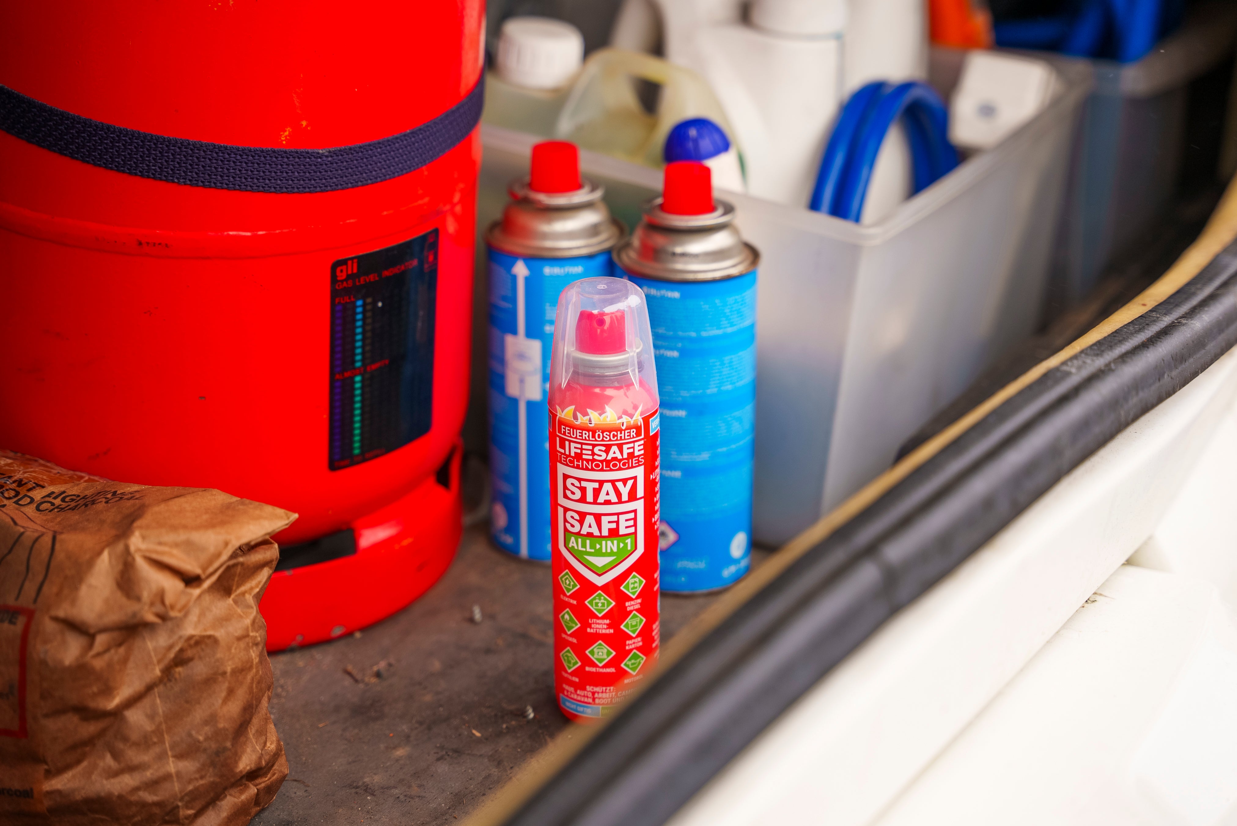 "Der StaySafe 5-in-1 Feuerlöscher begleitet mich auf Abenteuern in der Nähe des Herdes oder Lagerfeuers - er ist kompakt (ungefähr so groß wie eine Wasserflasche), leicht und vielseitig einsetzbar und sollte in Auto, Haus, beim Grillen oder Camping nicht fehlen. Ich hoffe, ihn nie benutzen zu müssen, aber er ist da, falls doch!"